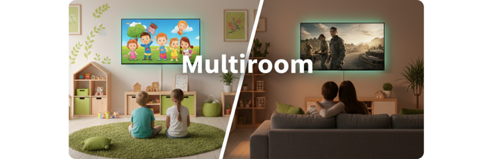 Każdy dekoder działa niezależnie – w jednym pokoju możesz oglądać mecz, a w drugim film lub bajkę.